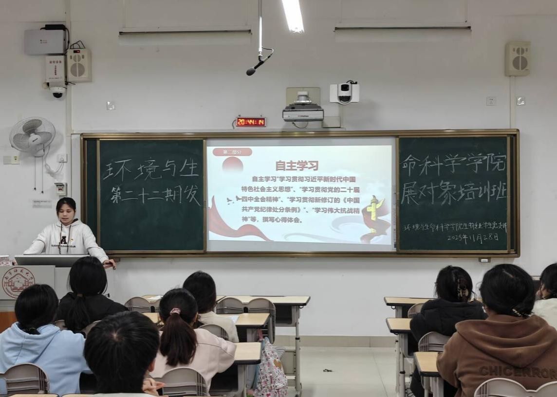 生物专业学生党支部于武鸣校区1号教学楼302教室举办发展对象培训会,支部全体发展对象参加了此次培训会。
