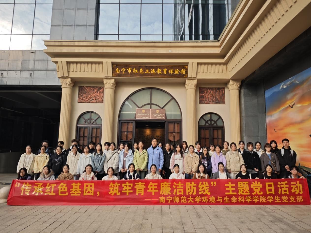 组织党员开展“传承红色基因,筑牢青年廉洁防线”主题党日活动,学院党委组织员普胤杰带领环境专业、环工专业、生物专业学生党支部及研究生党支部的党员前往南宁市红色工运教育体验馆开展学习实践活动。