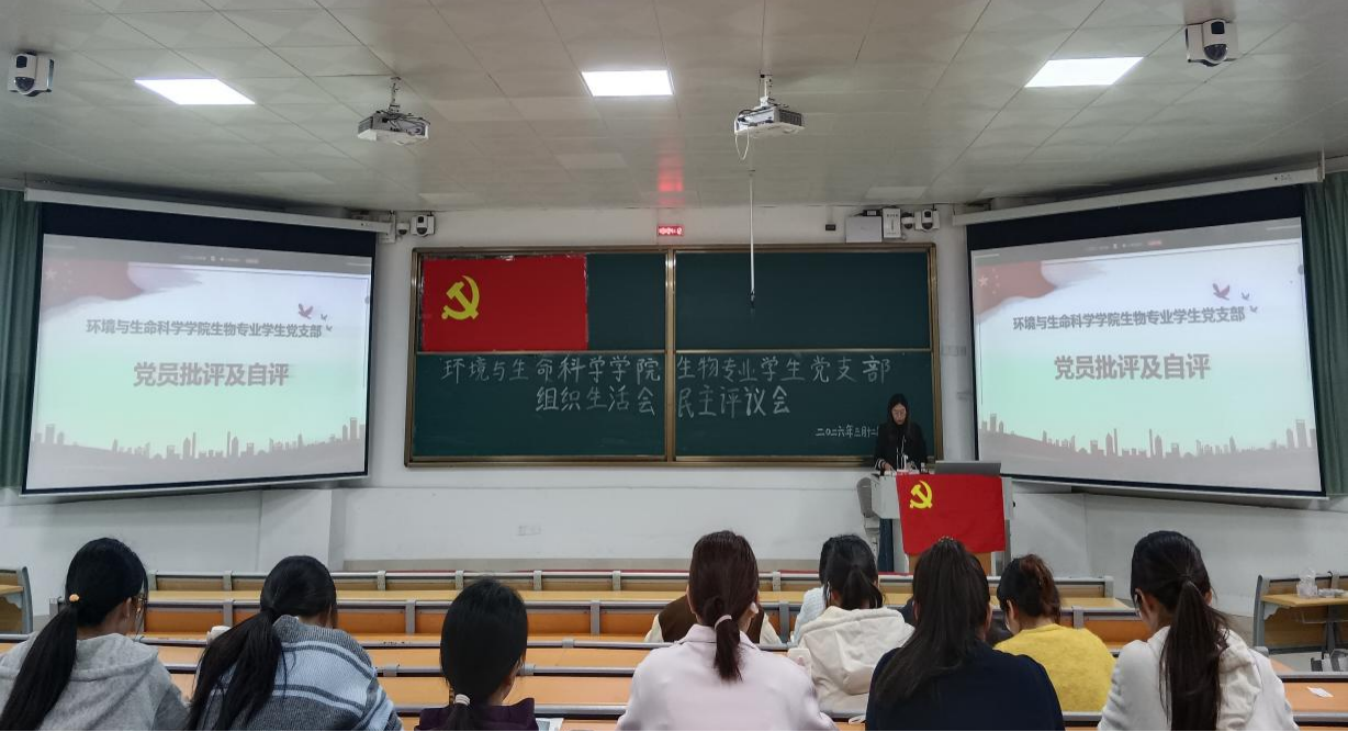 生物专业学生党支部在武鸣校区1号教学楼115教室开展专题组织生活会暨民主评议会。本次会议采取线上线下相结合的方式,由党支部书记刘雅楠主持,党支部全体党员参会。