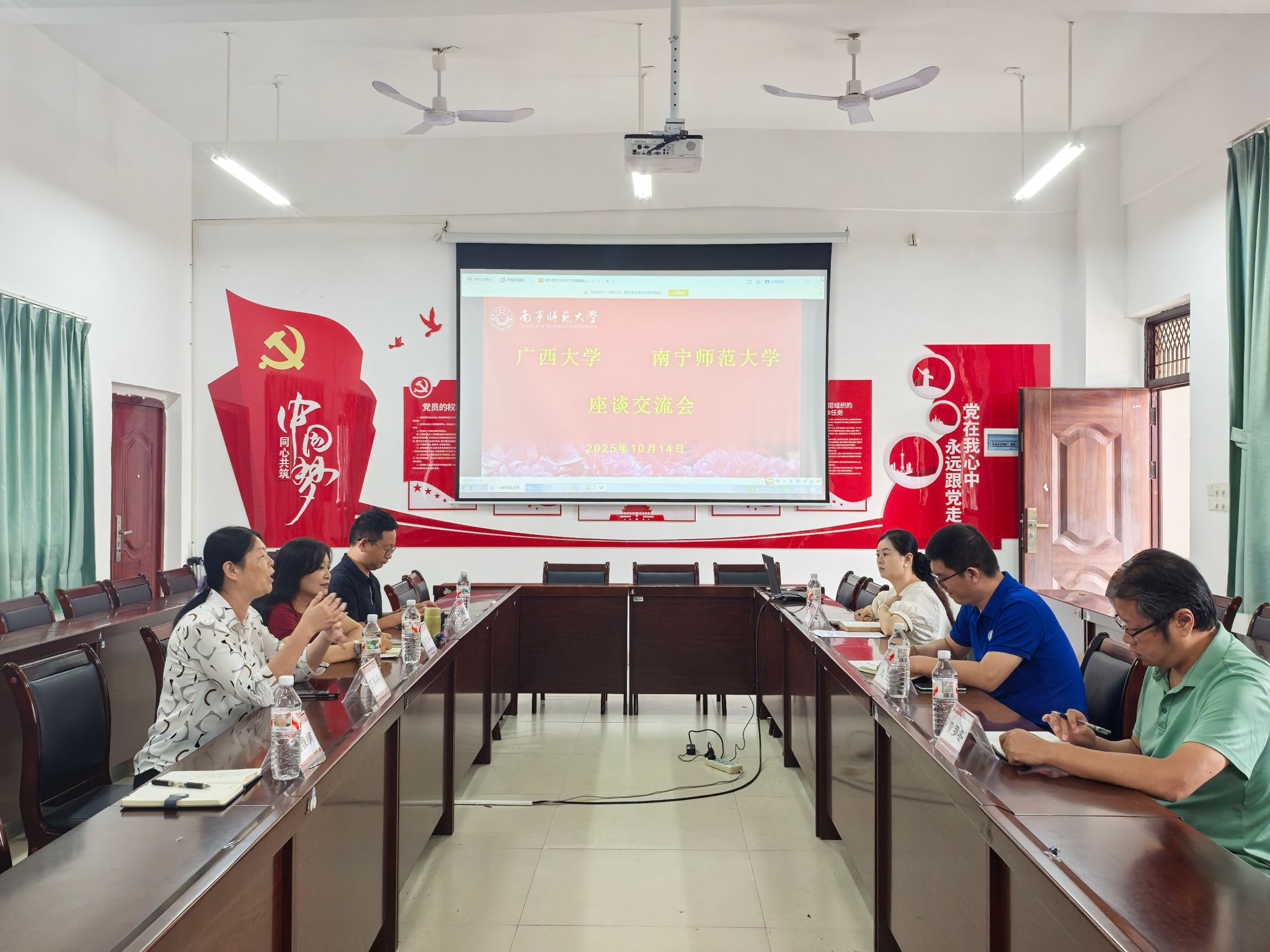 院长何英姿、副院长张忠华、院长助理徐超昊、团委书记刘雅楠参加了此次交流会。此次交流主要围绕学科建设、人才培养和科研平台建设等方面开展,交流会后广西大学生命科学与技术学院副院长赵帅进行了研究生招生宣讲活动。