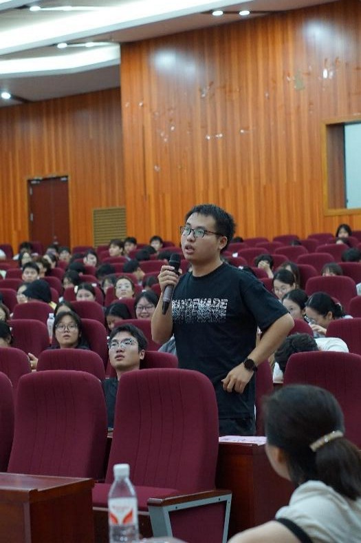 在互动答疑环节,在场师生围绕学业规划、职业发展等问题踊跃提问,张荣海校友逐一耐心回应。当被问及“如何平衡学习与生活”时,他寄语同学们:“大学是能力提升的黄金期,要主动跳出舒适区锻炼自己,时间从来不是‘等’出来的,而是靠合理规划‘挤’出来的。在谈及行业未来趋势,张荣海校友强调,人工智能(AI)已成为驱动各领域变革的核心力量,环境与生命科学领域也将迎来技术融合的新机遇。他鼓励同学们紧跟时代步伐,主动学习前沿技术,在创新实践中把握行业机遇,实现个人价值与行业发展的同频共振。