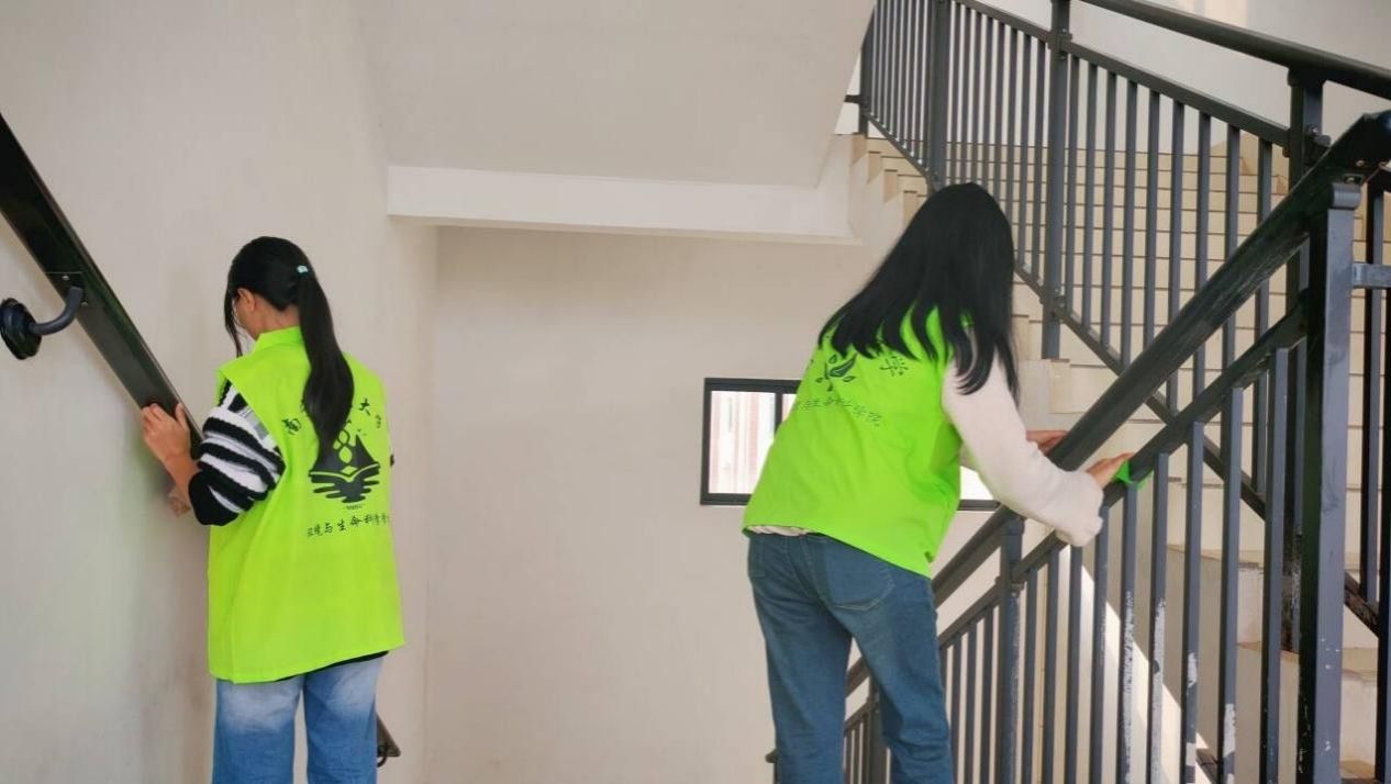 青年志愿者协会于12月7日在武鸣校区1号、2号教学楼开展了以“付诸清扫行动,共筑整洁校园”为主题的教学楼清扫系列活动。