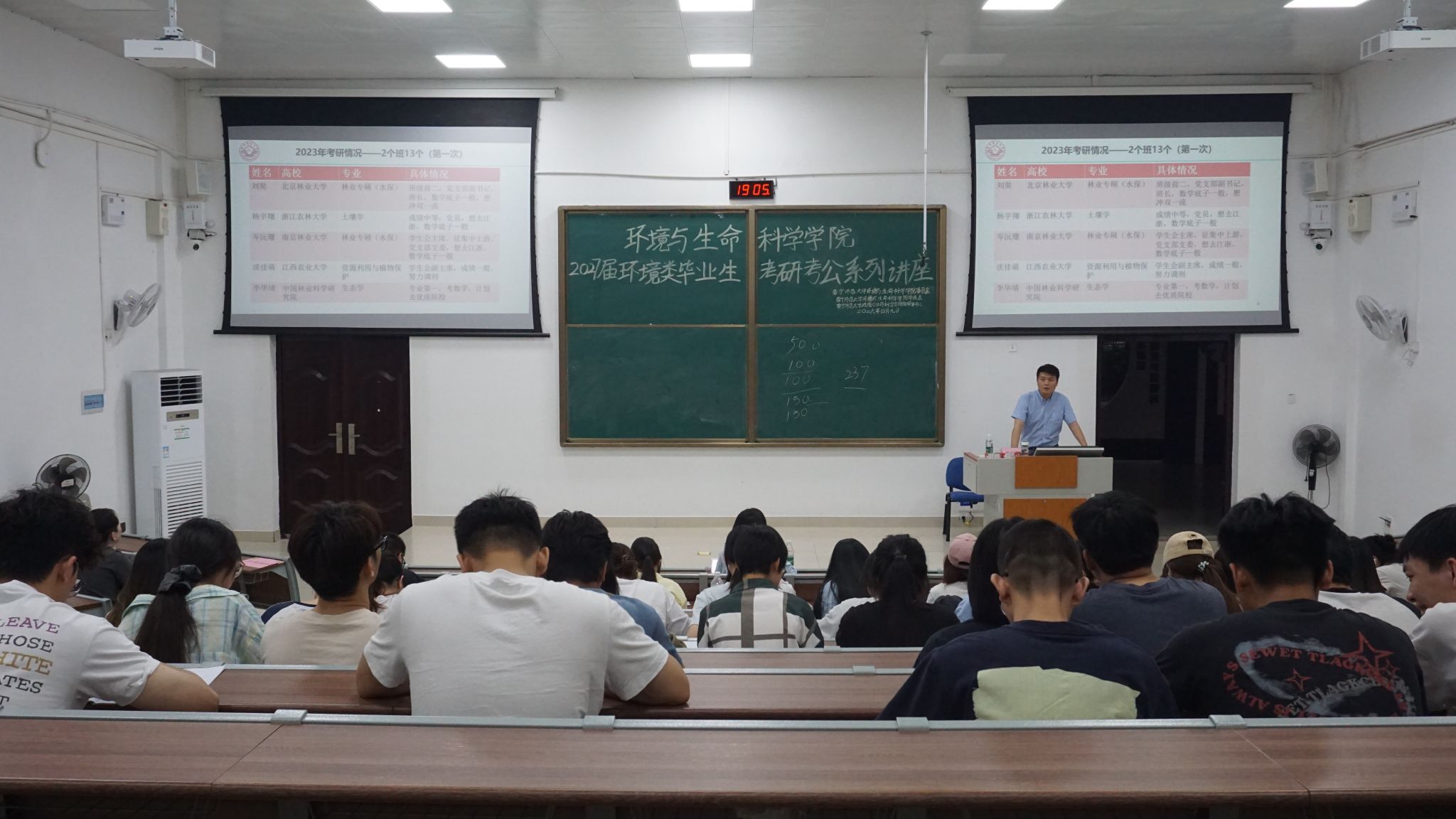 于4月9日晚在武鸣校区地海楼B109教室开展考研考公系列专题讲座。曲炳鹏老师和学院辅导员甘佩萍担任主讲人,为2027届环境类毕业生讲解环境类专业的考研考公方向。